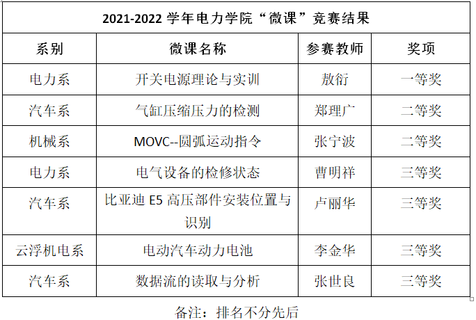 本次的“微課制作”競賽結(jié)果公布如下: