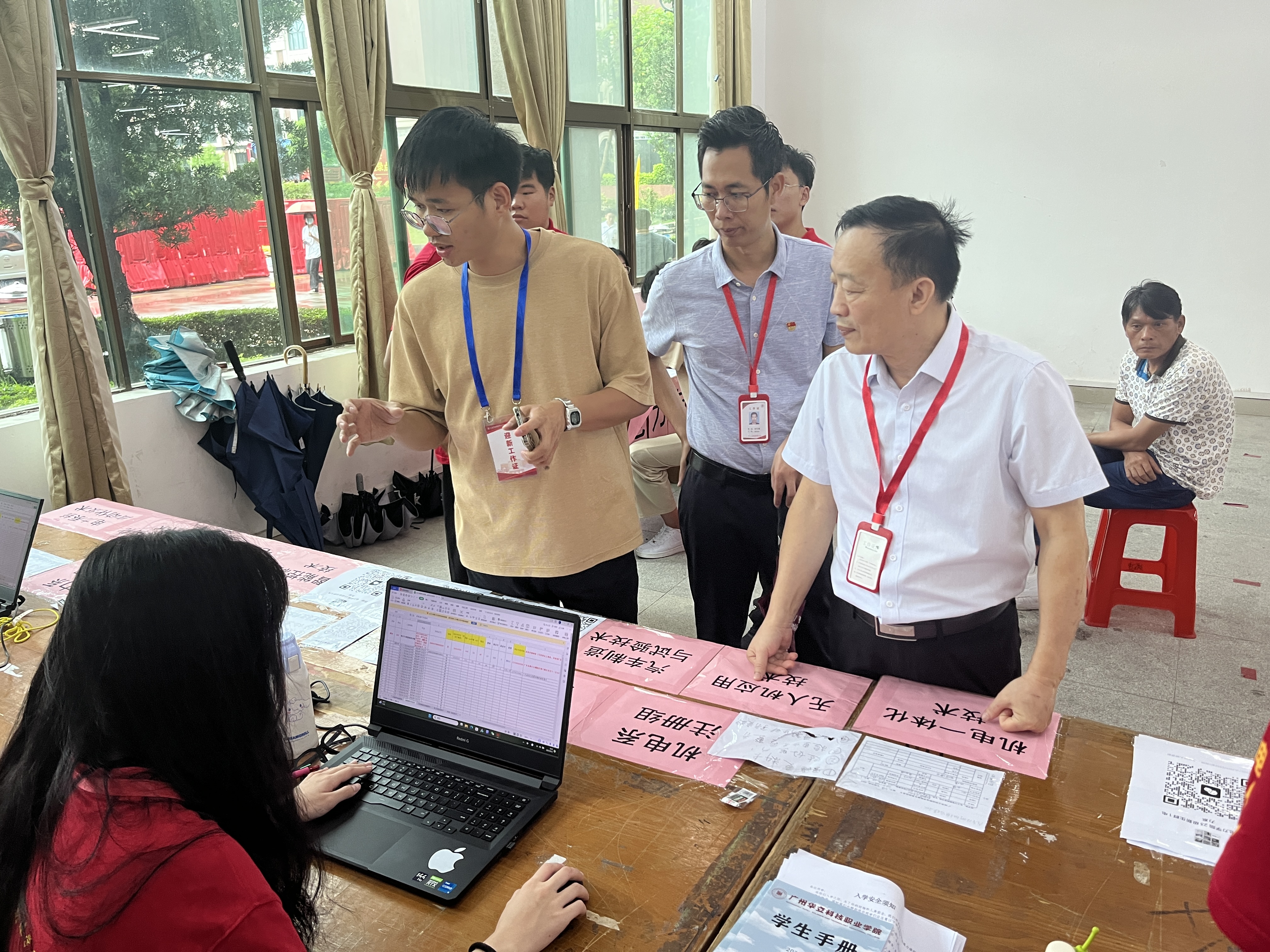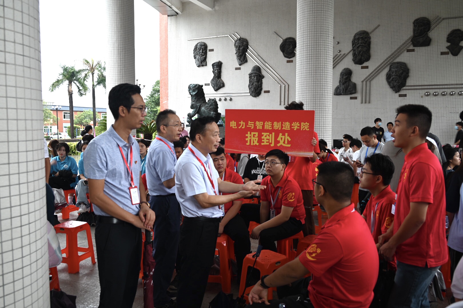 為了迎接新生,早上7:00,電力與智能制造學(xué)院的工作人員和學(xué)生志愿者們就已在學(xué)??萍紭墙哟c(diǎn)準(zhǔn)備就緒,拉開了2023級(jí)新生報(bào)到工作的序幕。