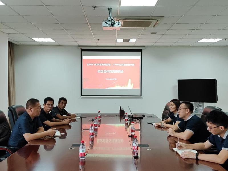 按照學(xué)?!?/span>2023年產(chǎn)教融合月活動(dòng)方案》文件的要求,10月7日,電力與智能制造學(xué)院黨總支書記褚玉峰、副院長(zhǎng)孫令真、教學(xué)副主任劉杰、行政人事干事楊軍等一行五人應(yīng)邀前往北汽(廣州)汽車有限公司(以下簡(jiǎn)稱“北汽廣州公司”)座談校企合作。北汽廣州公司綜合管理部部長(zhǎng)宋振濤、人力運(yùn)營(yíng)高級(jí)經(jīng)理黃建安、招聘培訓(xùn)負(fù)責(zé)人李婷婷參加了座談會(huì)。