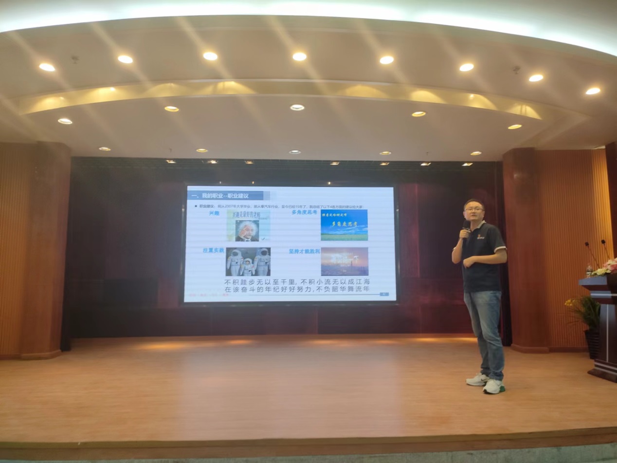 接著他從順應(yīng)汽車產(chǎn)業(yè)變革,把握新能源汽車和智能網(wǎng)聯(lián)汽車發(fā)展大勢(shì),招引培育專業(yè)人才,加強(qiáng)關(guān)鍵核心技術(shù)攻關(guān),增強(qiáng)產(chǎn)品核心競(jìng)爭(zhēng)力等方面,給同學(xué)們講了智能網(wǎng)聯(lián)汽車最新技術(shù)的應(yīng)用和未來(lái)的發(fā)展方向。最后,他鼓勵(lì)同學(xué)們要好好學(xué)習(xí),刻苦專研,爭(zhēng)取能夠在解決“卡脖子”關(guān)鍵核心技術(shù)有所突破,為中國(guó)的汽車產(chǎn)業(yè)發(fā)展貢獻(xiàn)力量。