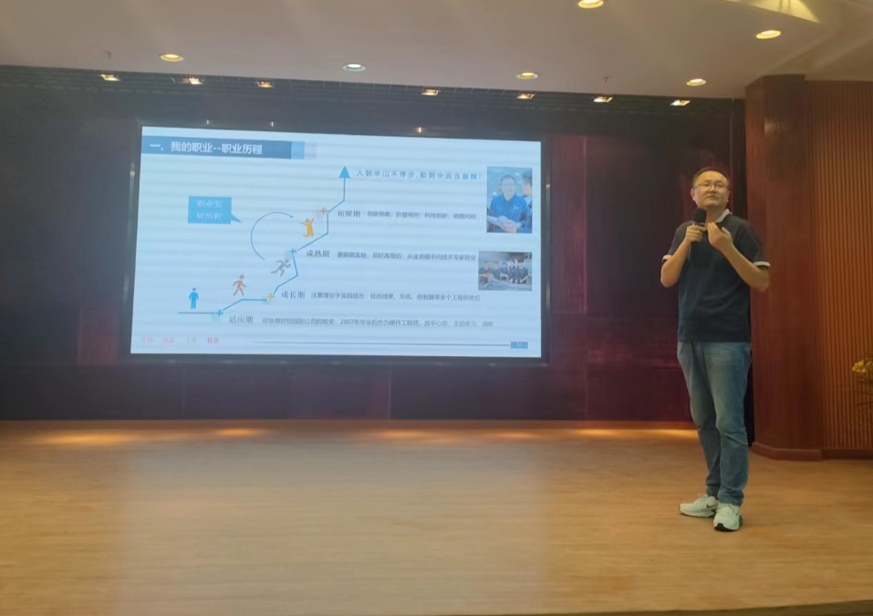 王新龍高級(jí)經(jīng)理首先結(jié)合個(gè)人成長(zhǎng)的適應(yīng)期、成長(zhǎng)期、成熟期、拓展期,給同學(xué)們提出了參加工作后每個(gè)時(shí)期的具體建議,最后他講到,自己之所以能夠取得今天的一點(diǎn)點(diǎn)成績(jī),除了源于自己對(duì)專業(yè)的熱愛(ài),執(zhí)著的追求和不懈的努力外,還應(yīng)感謝單位領(lǐng)導(dǎo)的重視和同志們的支持和幫助,沒(méi)有單位為我提供了一個(gè)發(fā)展平臺(tái)不可能有今天的成績(jī)。鼓勵(lì)同學(xué)們?cè)谠搳^斗的年紀(jì)要好好努力,積累知識(shí)和才干,提升素質(zhì)和能力,不負(fù)青春韶華,畢業(yè)后進(jìn)入公司要愛(ài)崗敬業(yè),不怕吃苦,腳踏實(shí)地,對(duì)待工作在多角度思考精益求精,只要堅(jiān)持不懈的努力付出,就一定會(huì)成功。