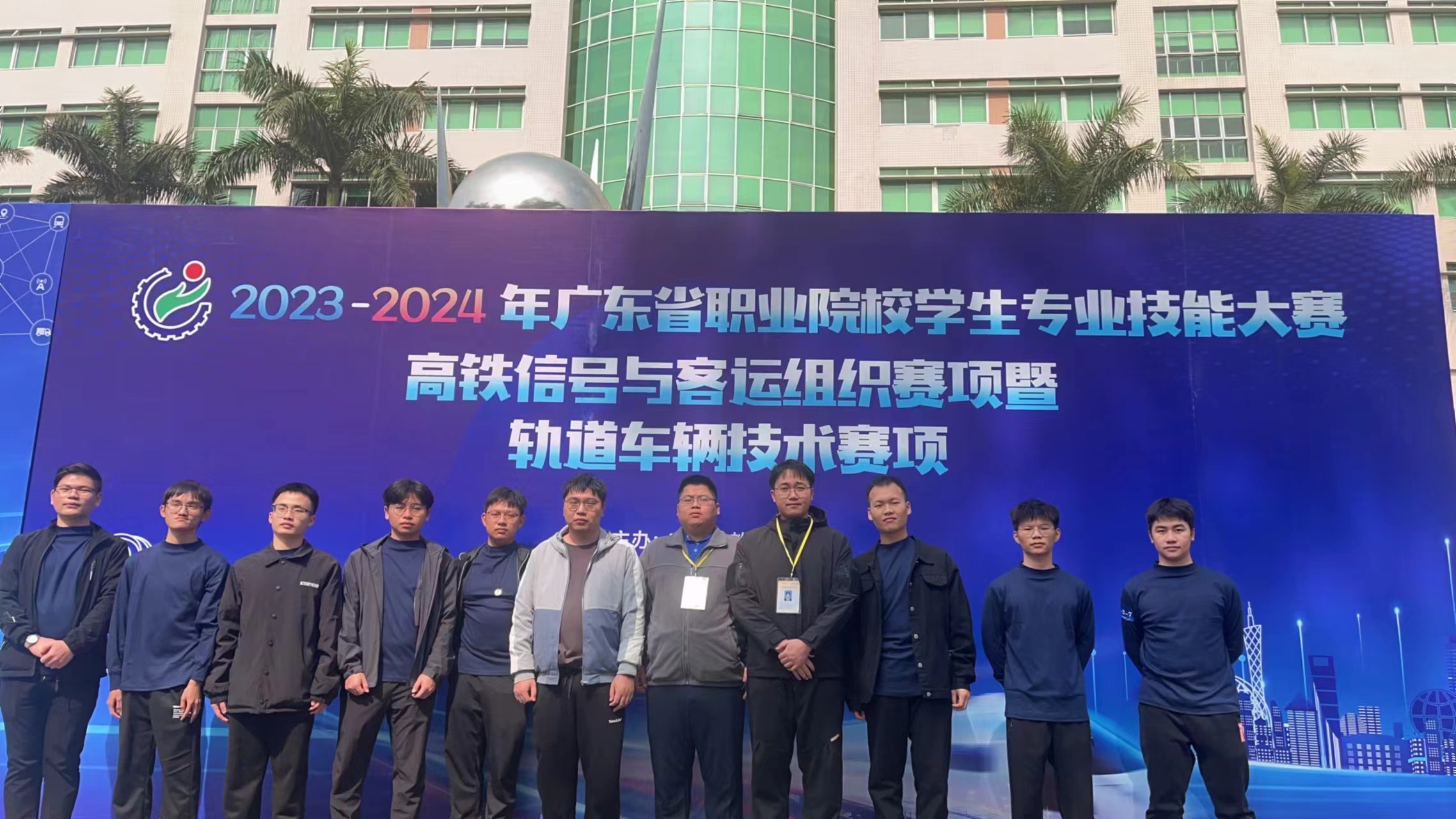 圖2:廣東省職業(yè)院校技能大賽“高鐵信號(hào)與客運(yùn)組織賽項(xiàng)暨軌道車(chē)輛技術(shù)”賽項(xiàng)現(xiàn)場(chǎng)合影