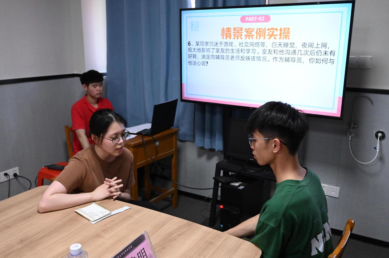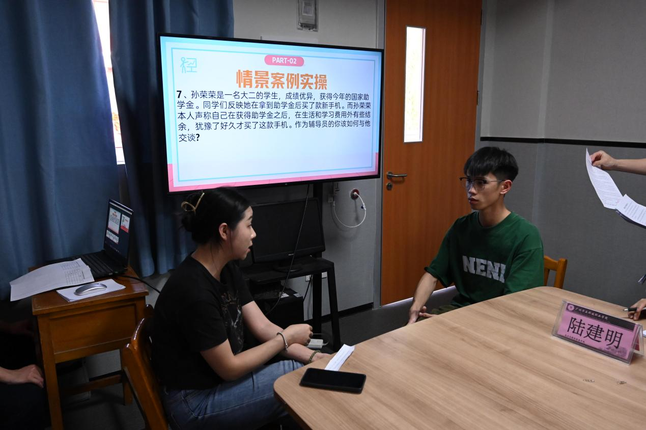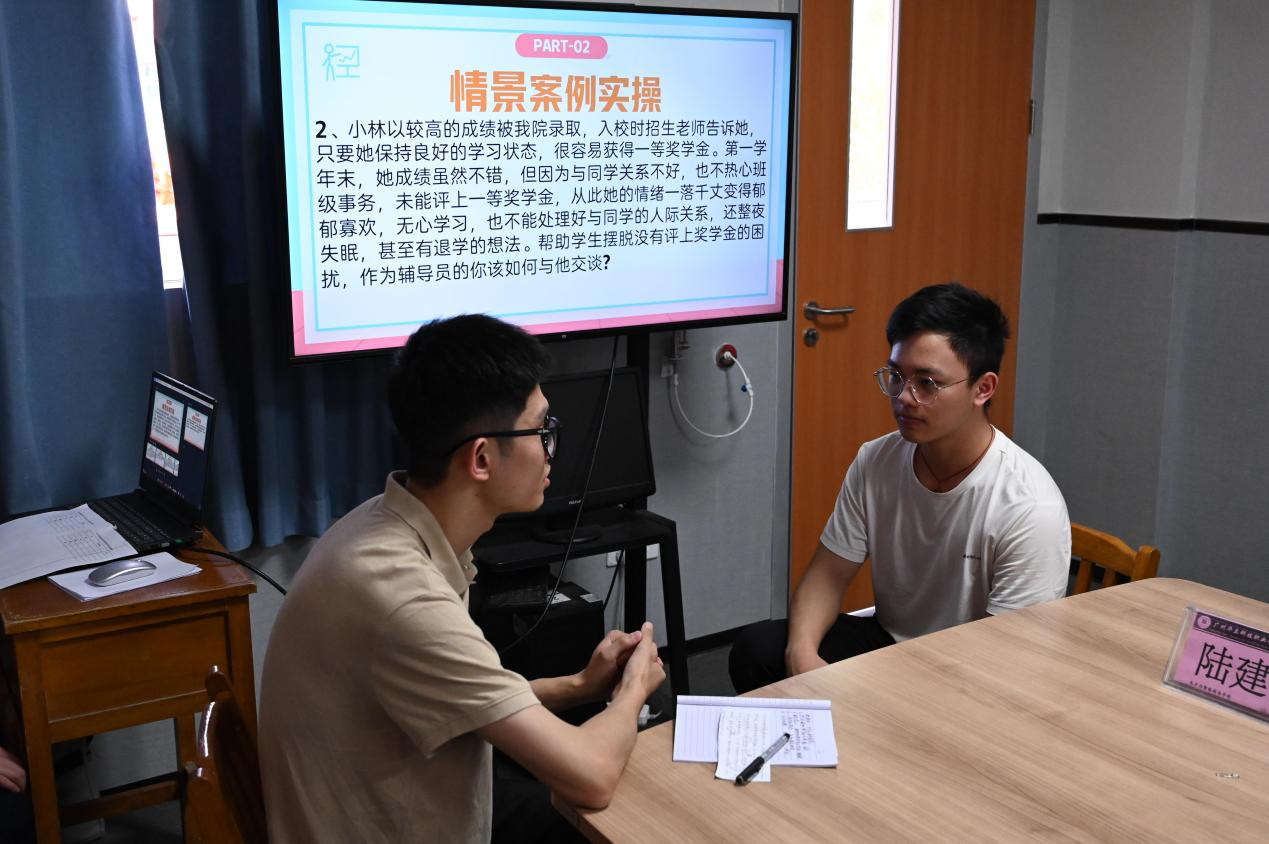接著,各位輔導(dǎo)員按照現(xiàn)場(chǎng)抽簽順序依次開(kāi)展“主題班會(huì)”和與學(xué)生開(kāi)展談心談話的“情景案例實(shí)操”,然后,由評(píng)委進(jìn)行評(píng)分。經(jīng)過(guò)各位老師的努力,最終劉留老師獲得“一等獎(jiǎng)”,劉浩老師獲得“二等獎(jiǎng)”,鐘穎、賴(lài)錦康、鄒思敏老師分別獲得“三等獎(jiǎng)”。