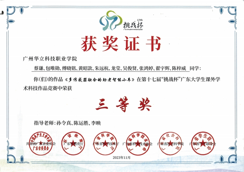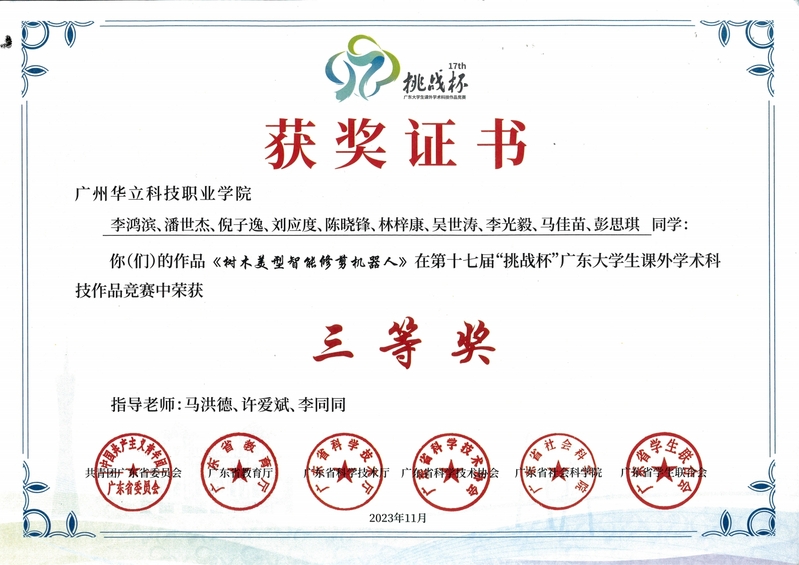 近期,在第十七屆“挑戰(zhàn)杯”廣東大學(xué)生課外學(xué)術(shù)科技作品競(jìng)賽中,電力與智能制造學(xué)院兩件參賽作品《樹木美型智能修剪機(jī)器人》、《多傳感器融合的助老智能小車》均榮獲省級(jí)三等獎(jiǎng)。