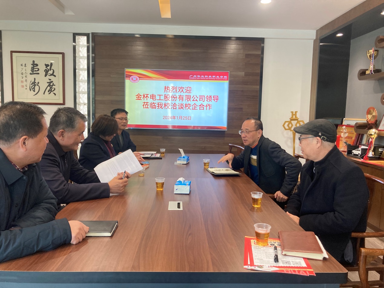 1月25日上午,學(xué)校邀請“金杯電工股份有限公司”領(lǐng)導(dǎo)來校洽談校企合作。學(xué)校校長陳德清,副校長馬俊,產(chǎn)教融合辦科長韋建林,電力與智能制造學(xué)院院長褚玉峰、就業(yè)主任楊軍等人參加了會議。