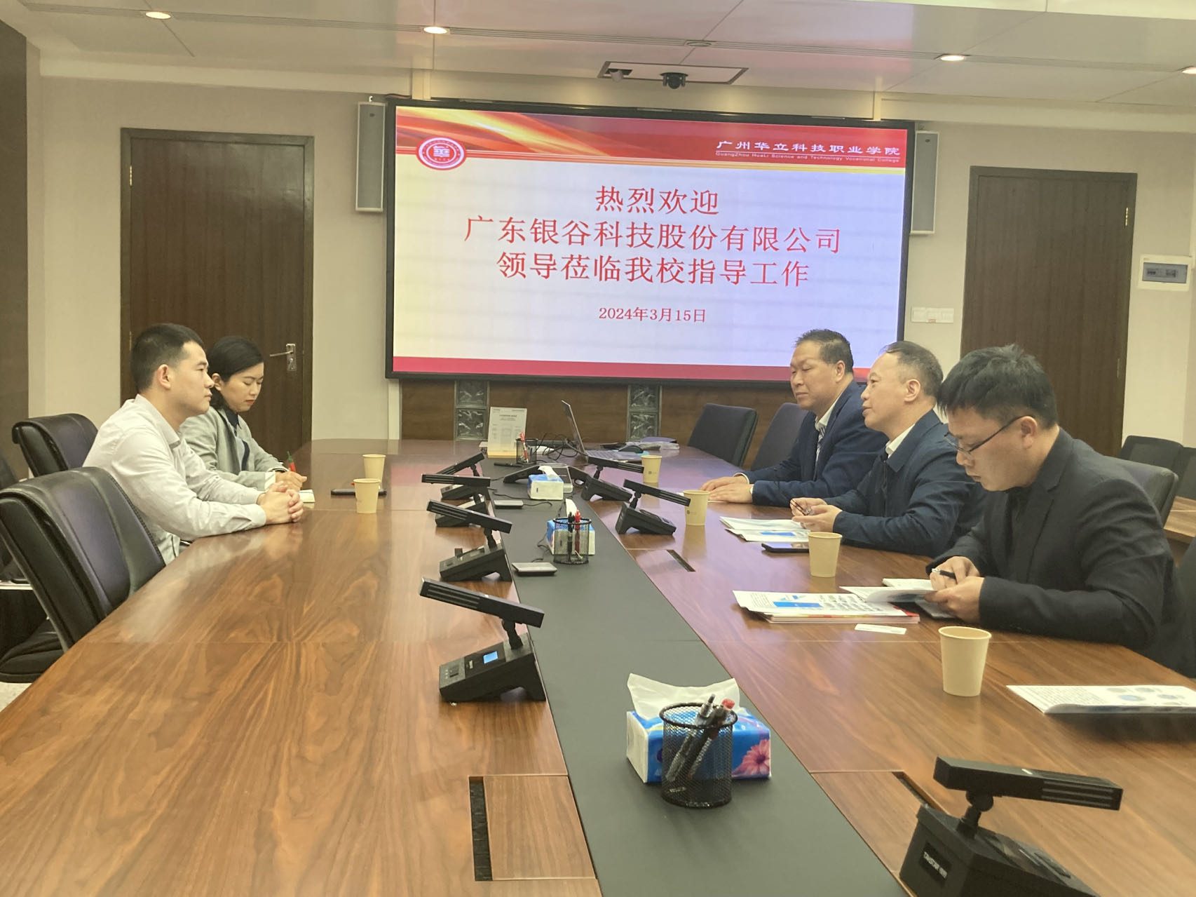 3月16日下午,學(xué)校邀請“廣東銀谷科技股份有限公司”領(lǐng)導(dǎo)來校洽談校企合作。學(xué)校黨委書記陳良生、產(chǎn)教融合辦科長韋建林、電力與智能制造學(xué)院院長褚玉峰、就業(yè)主任楊軍等人參加了會議。