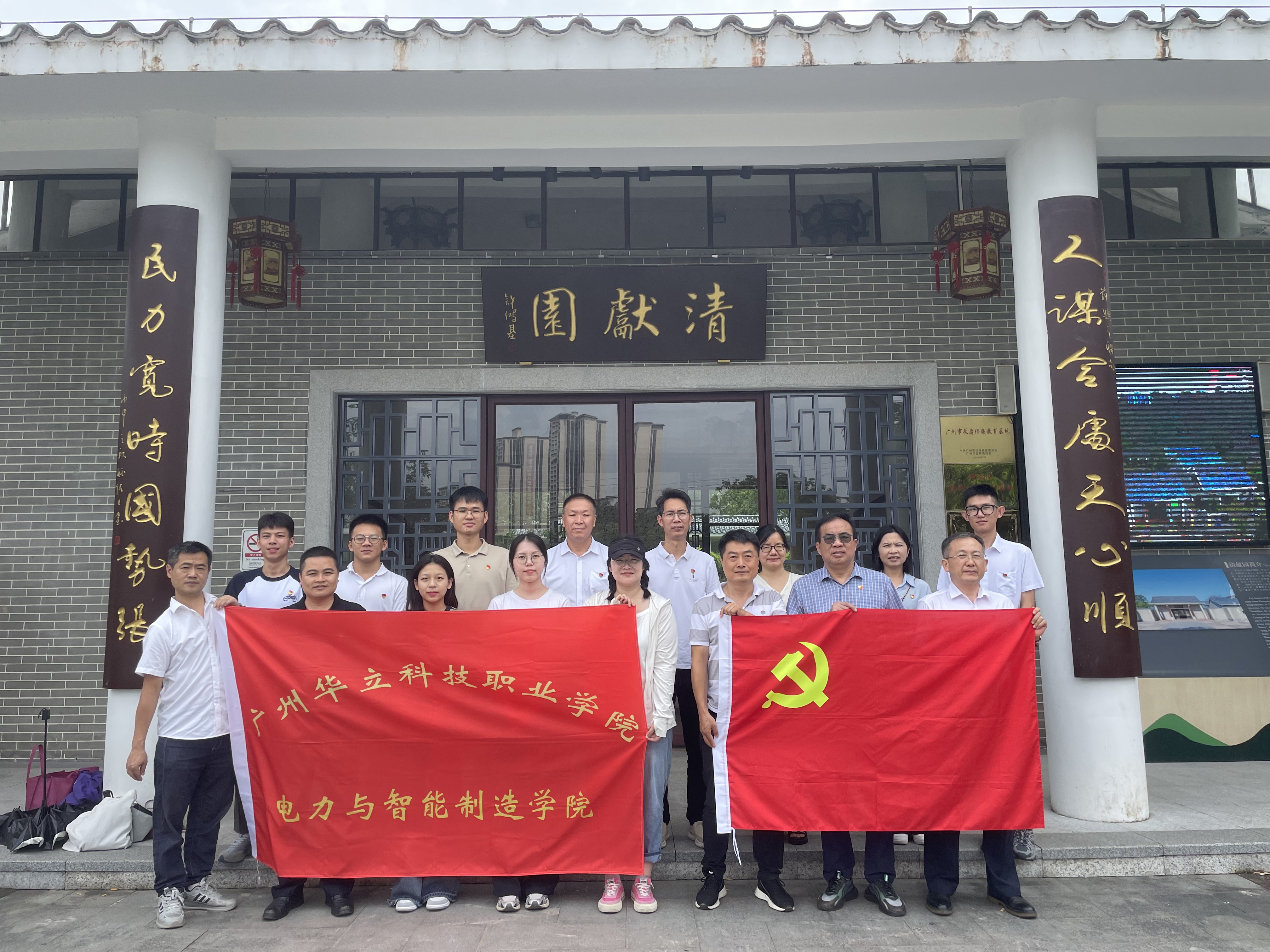 為了加強(qiáng)新時代廉潔文化建設(shè),深入開展黨性黨風(fēng)黨紀(jì)教育,傳承黨的光榮傳統(tǒng)和優(yōu)良作風(fēng),激發(fā)共產(chǎn)黨員崇高理想追求。電力與智能制造學(xué)院黨總支教師黨支部于6月22日組織全體教師黨員去廣州增城區(qū)的“清獻(xiàn)園”開展廉潔自律研學(xué)。