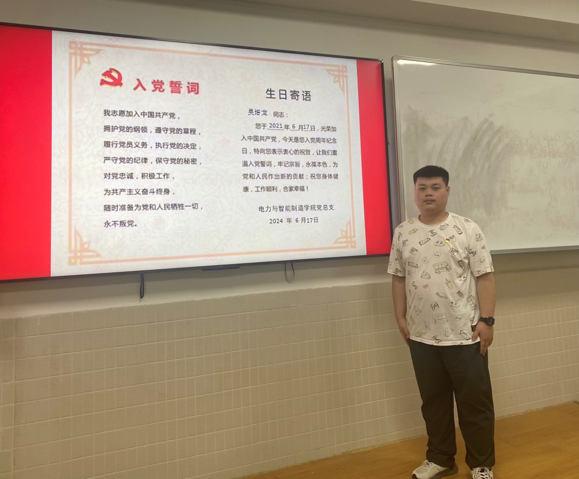 作為電力與智能制造學(xué)院的一名教師黨員吳培龍,6月17日早上,收到了學(xué)院黨組織發(fā)的“政治生日”賀卡,心情特別興奮,2021年6月17日是我加入中國共產(chǎn)黨的日子。