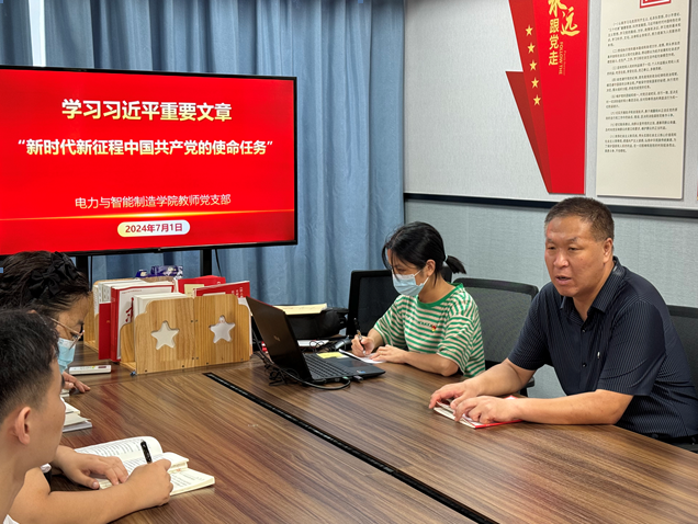 2024年7月1日,是中國共產(chǎn)黨建黨103周年,在這個(gè)舉國歡慶的日子,電力與智能制造學(xué)院黨總支在西1-514B會(huì)議室開展了黨員“七一”感言和承諾主題黨日活動(dòng)。學(xué)院全體黨員參加了活動(dòng),會(huì)議由學(xué)院黨總支書記褚玉峰主持。