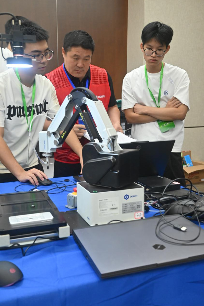 2024年8月20日-22日,2024睿抗機器人開發(fā)者大賽全國總決賽-CAIM機器視覺系統(tǒng)創(chuàng)新賽在杭州市余杭區(qū)中國人工智能小鎮(zhèn)舉行。我院學生林子圣、林子楊、張國峰、黃爍函、楊育泰在指導教師劉杰的帶領下,與來自全國34個省市的108支代表隊、同場地競技,角逐一、二、三等獎。經(jīng)過緊張激烈的比賽,我院學生奪得該項目高職組二等獎,可喜可賀。