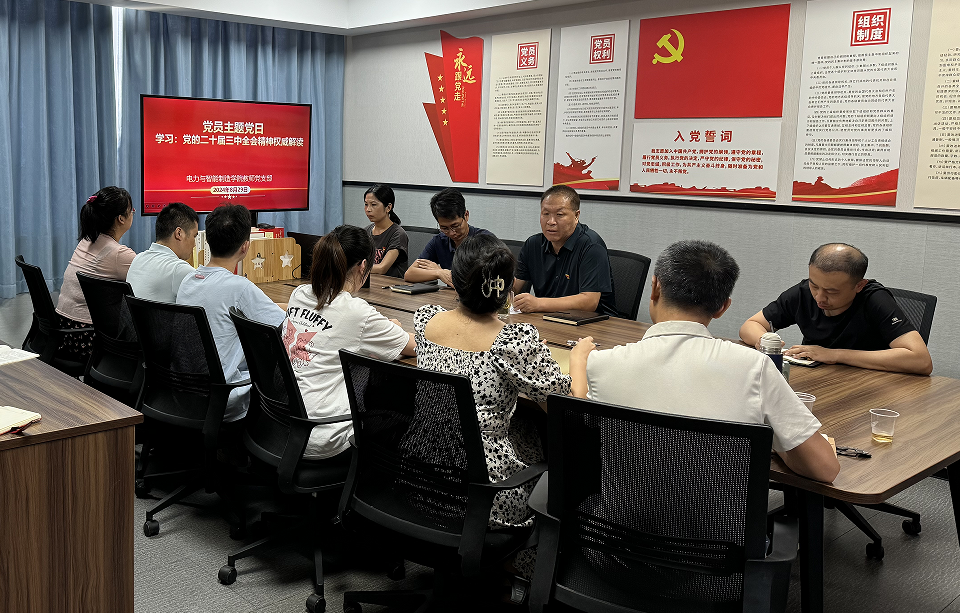 新學(xué)期教師返校后,8月29日下午,電力與智能制造學(xué)院教師黨支部組織全體教師黨員開展學(xué)習(xí)“黨的二十屆三中全會(huì)精神,學(xué)院黨總支書記褚玉峰及教師黨支部全體黨員參加了會(huì)議,會(huì)議由教師黨支部孫令真書記主持。