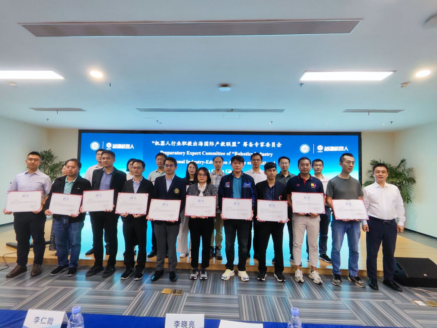 本次論壇隆重舉行了“機器人行業(yè)職教出海國際產(chǎn)教聯(lián)盟”籌備專家委員會聘書頒發(fā)儀式。該聯(lián)盟由全國機器人系統(tǒng)集成產(chǎn)教融合共同體和越疆科技牽頭發(fā)起,受到了現(xiàn)場90余名參會人員的積極響應(yīng)。我院褚玉峰院長、楊軍主任分別被聘為“機器人行業(yè)職教出海國際產(chǎn)教聯(lián)盟”籌備專家。