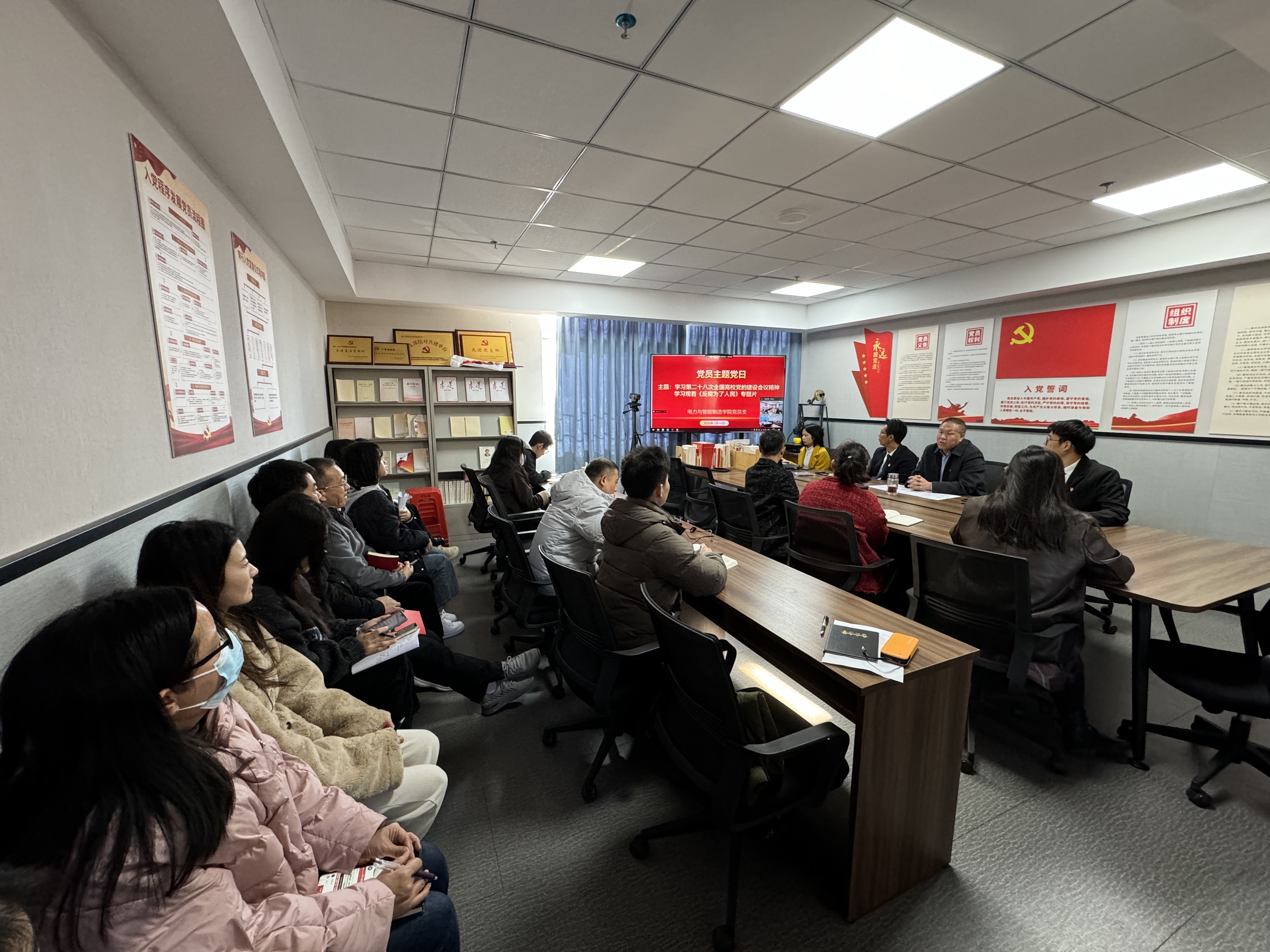 1月13日,電力與智能制造學(xué)院黨總支組織全體黨員教師,開(kāi)展學(xué)習(xí)《第二十八次全國(guó)高校黨的建設(shè)會(huì)議精神》和學(xué)習(xí)觀看《反腐為了人民》專題片”為主題的黨員主題黨日活動(dòng),會(huì)議由黨總支書記褚玉峰主持。