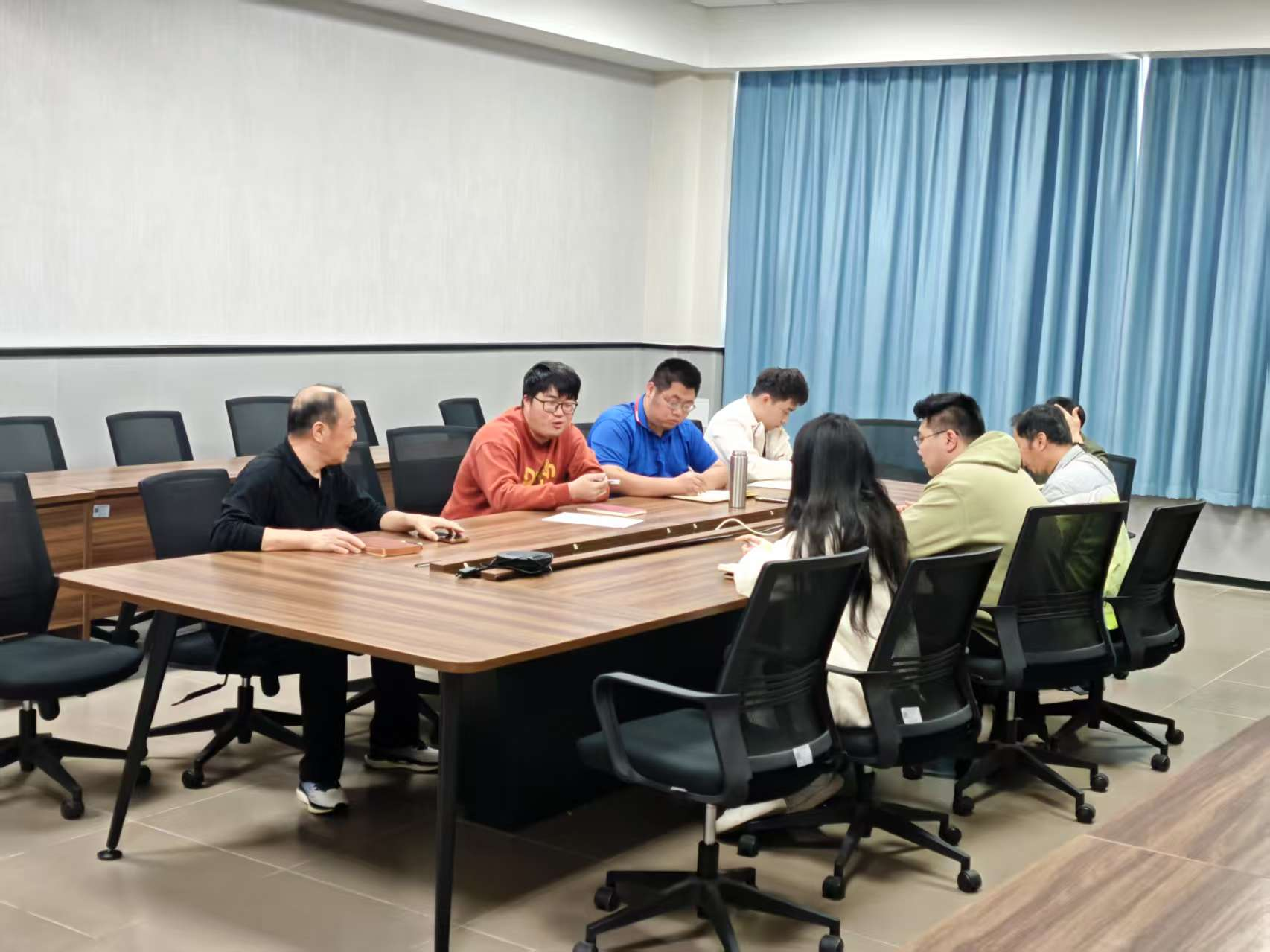馬洪德副院長就議題發(fā)表講話,他首先肯定了師生的辛勤付出:”學(xué)院高度重視此次大賽,自去年起就提前謀劃組建了專業(yè)指導(dǎo)教師團(tuán)隊,系統(tǒng)推進(jìn)備賽工作。然而對比省內(nèi)先進(jìn)院校,他們在師資梯隊建設(shè)、選手培養(yǎng)機(jī)制和設(shè)備保障方面已經(jīng)形成了更為成熟的體系。雖然我們的參賽師生付出了極大努力,但最終成績與預(yù)期仍存在一定差距。通過與其他院校比較,我們也清醒認(rèn)識到存在的不足:一是師生參賽經(jīng)驗相對欠缺,在訓(xùn)練方法和競賽策略上仍需提升;二是學(xué)校實訓(xùn)設(shè)備與競賽要求存在一定差距,影響了訓(xùn)練效果?!?/span>