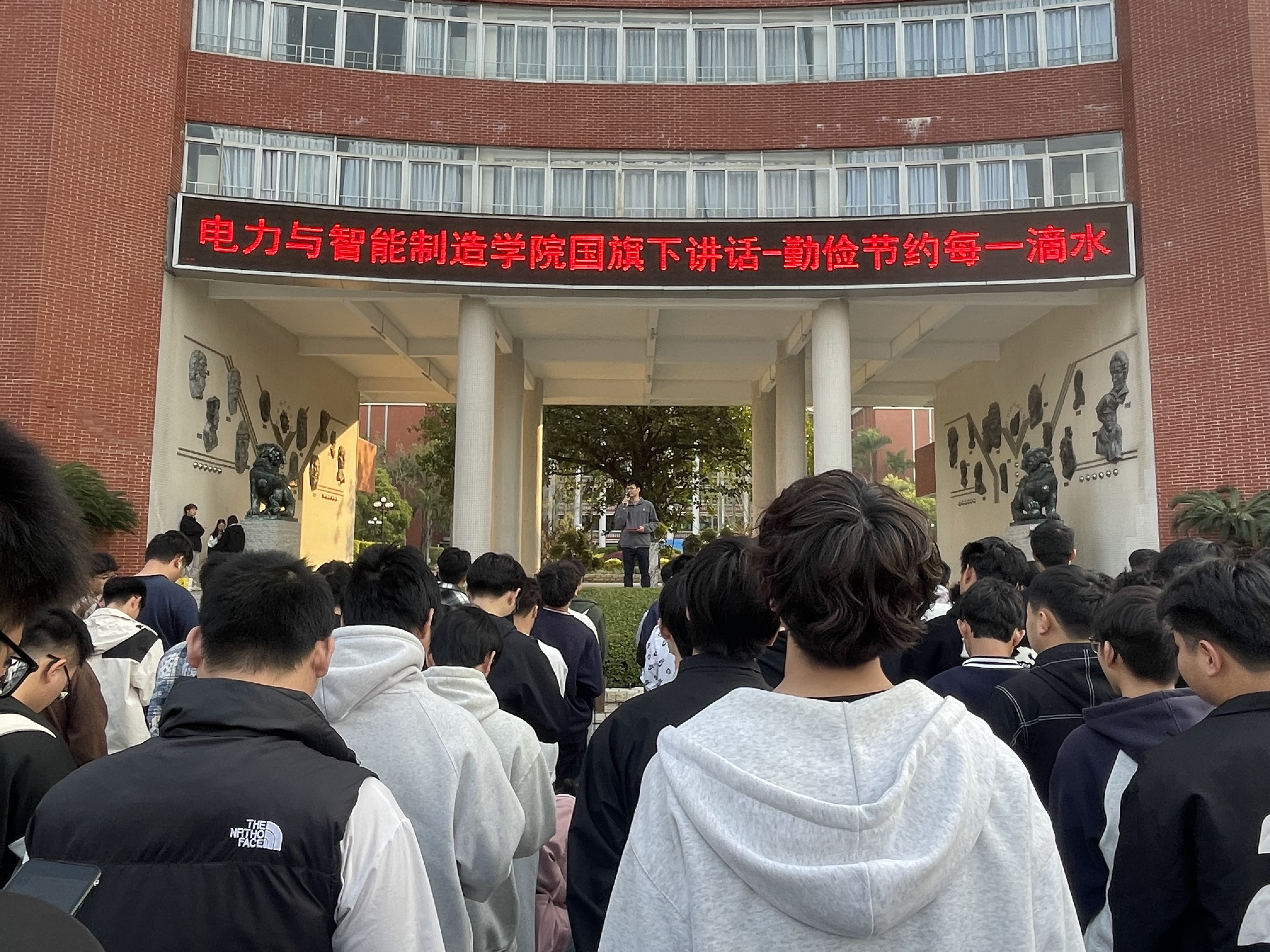 學(xué)院黨總支副書(shū)記、學(xué)管主任鄭理廣老師進(jìn)行了國(guó)旗下講話(huà),他講到3月22日世界水日雖過(guò),但節(jié)水不能停,水是生命之源,地球上萬(wàn)千生命由水孕育,我們的生活、生產(chǎn)樣樣離不開(kāi)水。然而現(xiàn)實(shí)嚴(yán)峻,地球上可利用淡水資源極少,干旱地區(qū)取水艱難,而我們身邊浪費(fèi)水現(xiàn)象卻很常見(jiàn)。我國(guó)也是缺水大國(guó),人均水資源低,缺水制約生活與經(jīng)濟(jì)。國(guó)家雖大力緩解缺水問(wèn)題,但節(jié)水需人人參與,希望我們每個(gè)同學(xué)都能養(yǎng)著節(jié)約用水習(xí)慣,從點(diǎn)滴做起,如一水多用、關(guān)緊水龍頭等,讓每滴水發(fā)揮最大價(jià)值,守護(hù)地球家園。