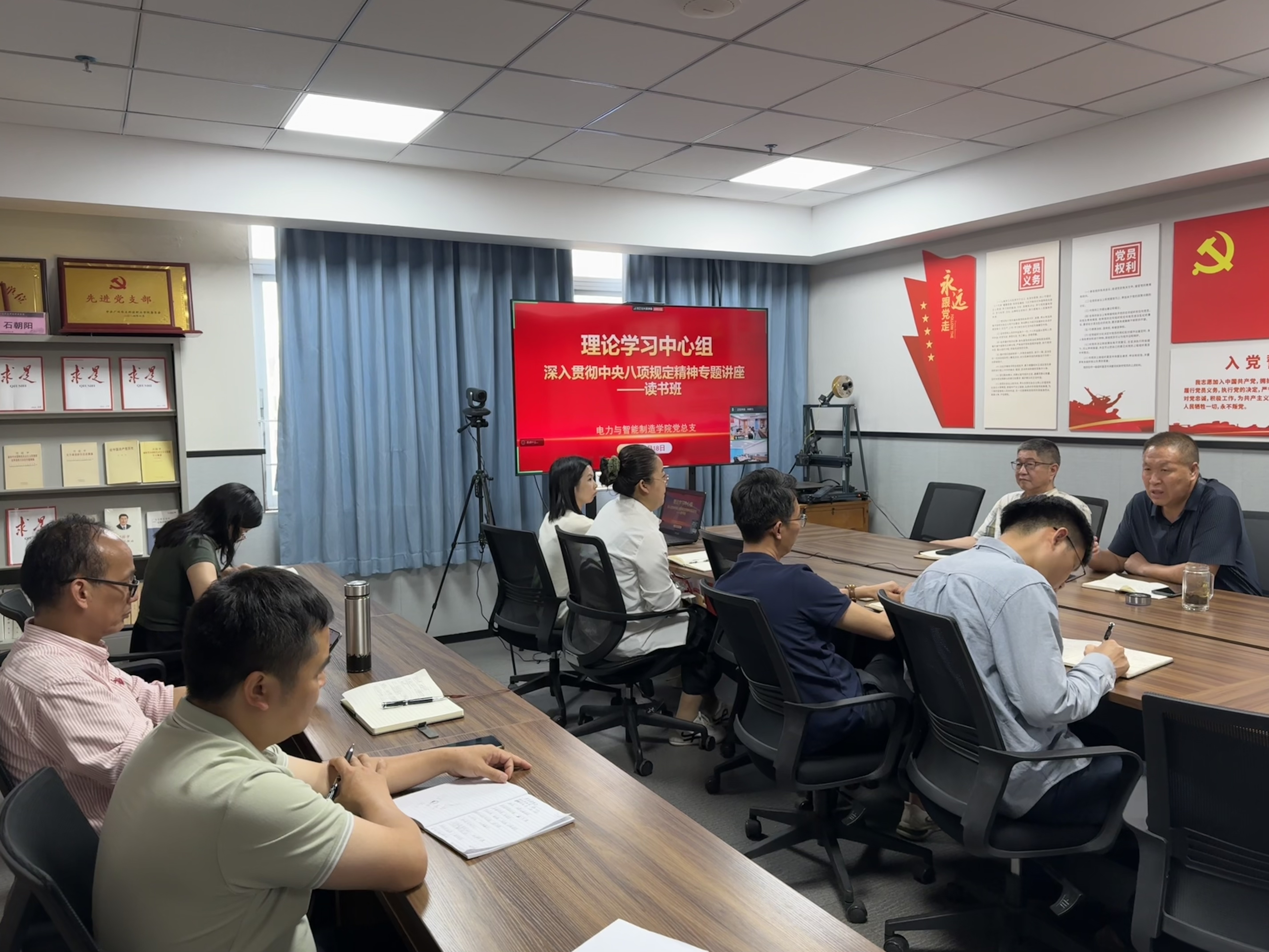 根據(jù)學校黨委關于深入貫徹中央八項規(guī)定精神學習教育工作安排,4月18日電力與智能制造學院黨總支在理論學習中心組2次集中學習時,舉辦了深入貫徹中央八項規(guī)定精神學習教育讀書班,學院黨總支書記褚玉峰做了題目為《深入貫徹中央八項規(guī)定精神,以作風建設新成效保障學院高質(zhì)量發(fā)展》的專題講座。