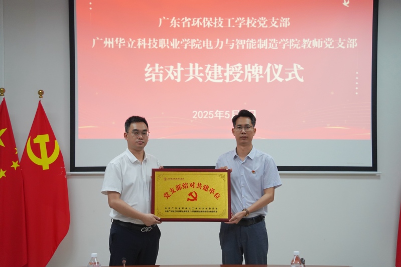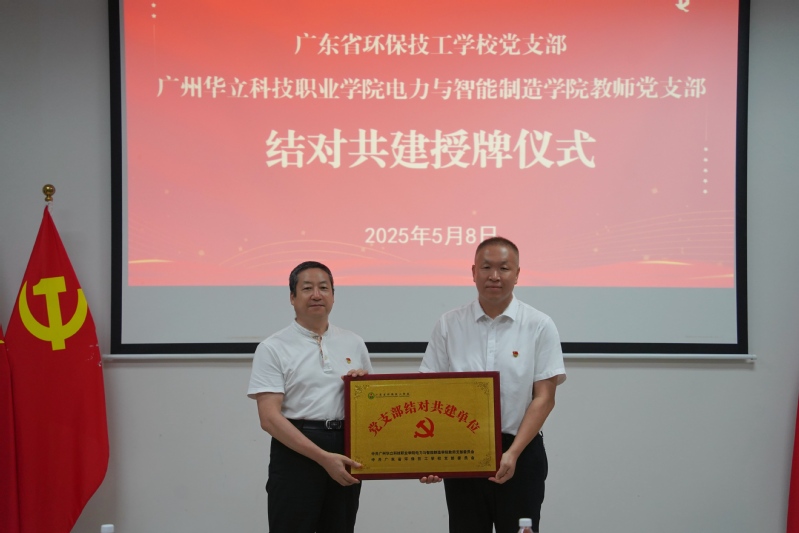 (電力與智能制造學院黨總支書記褚玉峰為廣東省環(huán)保技工學校黨支部授牌)