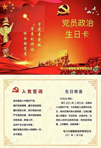 作為電力與智能制造學(xué)院云浮校區(qū)的一名輔導(dǎo)員何成迎,5月30日上午,收到了學(xué)院黨組織發(fā)的“政治生日”賀卡,心情特別興奮。五載時(shí)光如水流逝,卻清晰記得2019年那個(gè)五月的日子,當(dāng)我在黨旗下莊嚴(yán)宣誓,那一刻,黨的崇高理想便如種子般在我心中扎下了根。如今,在學(xué)院輔導(dǎo)員崗位上迎來我的政治生日,重溫誓詞,再撫初心,感到這不僅是個(gè)人信仰的刻度尺,更是一份沉甸甸的責(zé)任記。