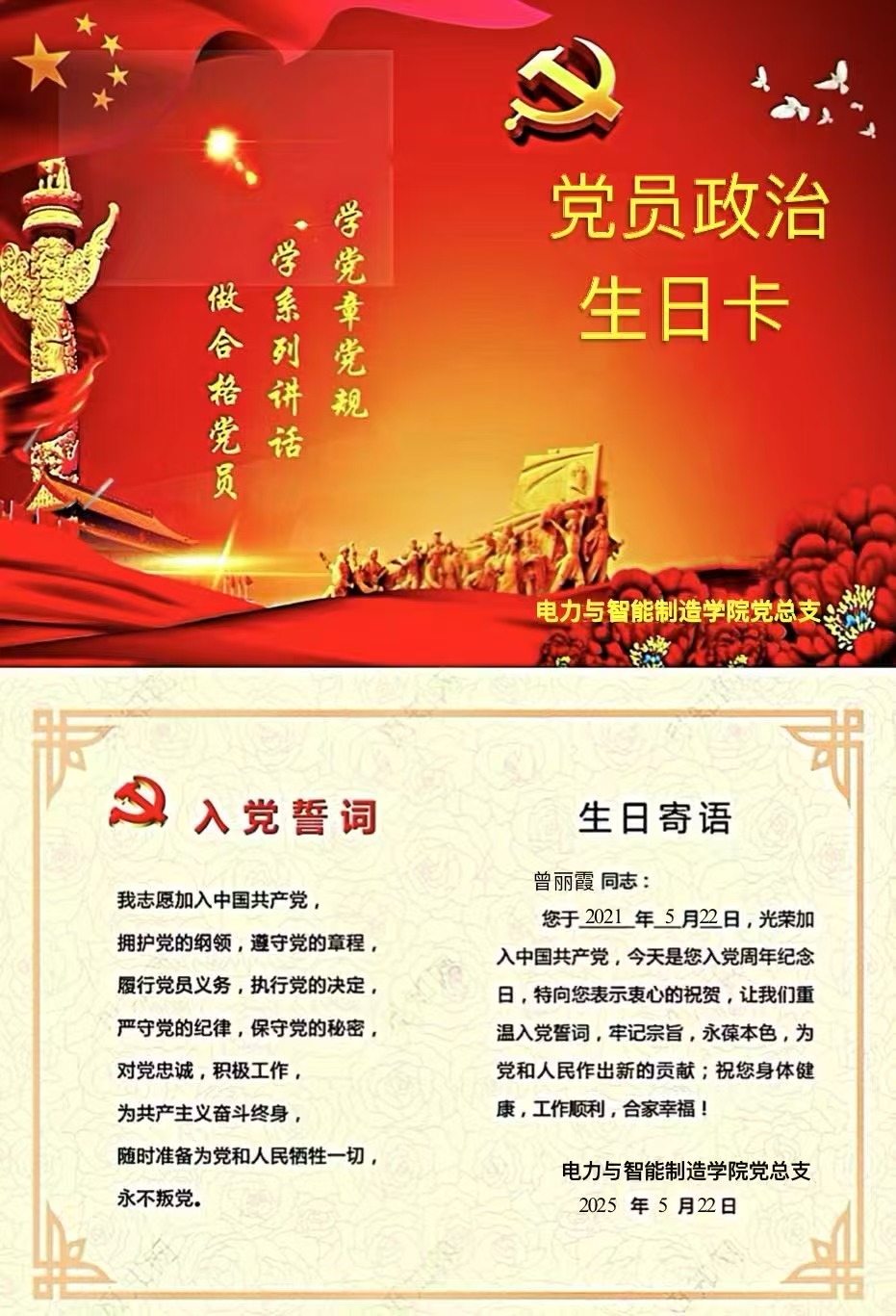 2021年5月22日,是我加入中國(guó)共產(chǎn)黨的日子。2025年5月22日早上收到學(xué)院黨組織的“政治生日”賀卡,我的內(nèi)心萬分地激動(dòng)和感動(dòng),讓我仿佛回到了入黨時(shí)的那個(gè)神圣時(shí)刻。