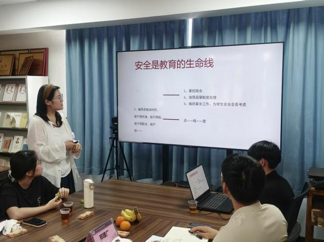 輔導(dǎo)員劉留老師分享了安全是教育的生命線。她主張從家校聯(lián)合,到按照規(guī)則制度處理,再到做好家長工作、為學(xué)生安全全面考慮。從點(diǎn)到線再到面出發(fā),正確處理學(xué)生可能出現(xiàn)的各種問題。