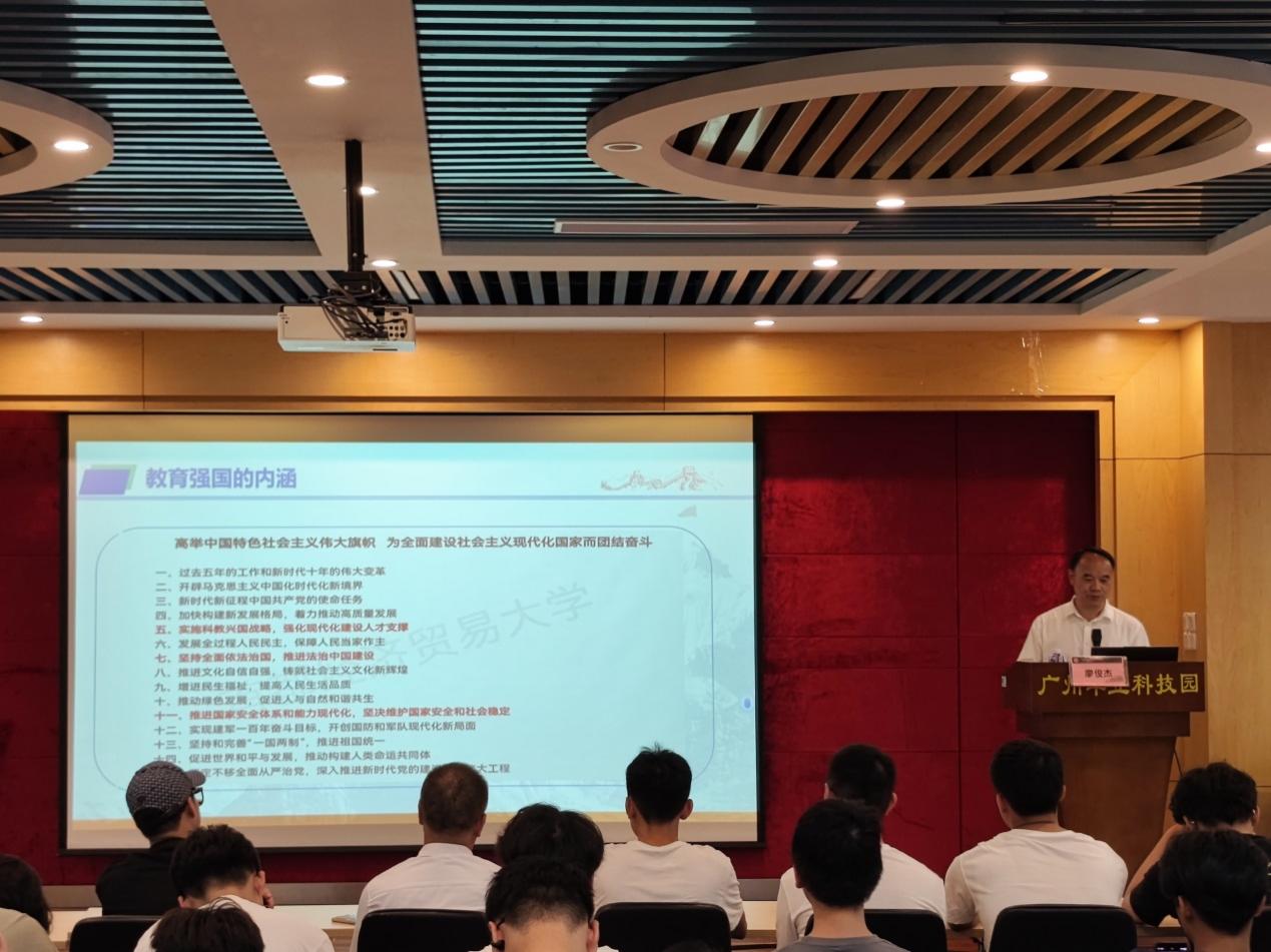為落實(shí)立德樹人根本任務(wù),培養(yǎng)學(xué)生的愛國(guó)之情、砥礪報(bào)國(guó)之志,激勵(lì)學(xué)生走“技能成才、技能報(bào)國(guó)”之路。6月25日上午10點(diǎn)30分在科技樓的報(bào)告廳,廣州華立科技職業(yè)學(xué)院校長(zhǎng)廖俊杰教授以“學(xué)習(xí)貫徹黨的二十大精神,爭(zhēng)做技能報(bào)國(guó)逐夢(mèng)人”為題目,為電力學(xué)院沒(méi)有課的同學(xué)上了一堂內(nèi)涵豐富、情真意切的思政課。