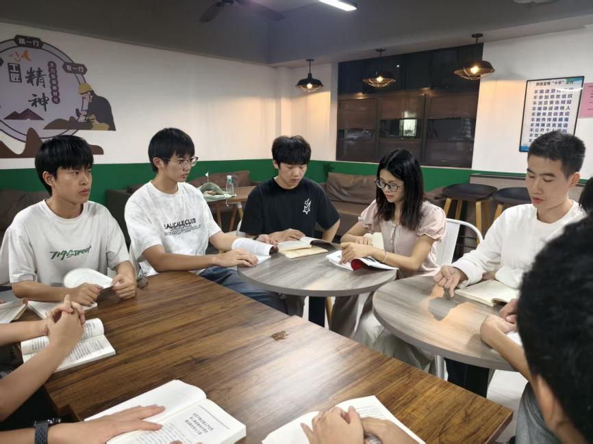 2025年11月06日晚,黨員羅熾老師在G2樓的“一站式”學(xué)生社區(qū)組織開展“讀書分享”,引領(lǐng)學(xué)生在紅色經(jīng)典中汲取奮進(jìn)的力量。