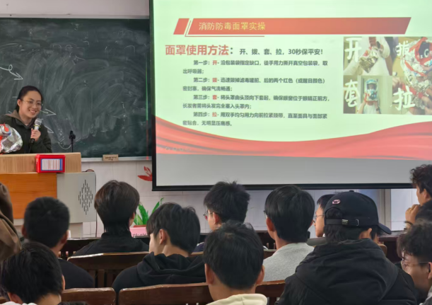 培訓(xùn)中,實(shí)訓(xùn)室管理員陳曉欣老師結(jié)合實(shí)訓(xùn)室日常管理實(shí)例,詳細(xì)解讀了儀器設(shè)備操作規(guī)程,實(shí)訓(xùn)室安全管理須知,重點(diǎn)強(qiáng)調(diào)了消防安全“預(yù)防為先、防消結(jié)合”的基本原則。針對(duì)實(shí)訓(xùn)室可能出現(xiàn)的電氣設(shè)備故障火災(zāi)等突發(fā)情況,管理員現(xiàn)場演示了防毒面具的正確佩戴步驟,講解了滅火器的使用方法,逐一拆解操作要點(diǎn),每位來講座的班級(jí)代表成為班級(jí)安全知識(shí)的“傳播員”。