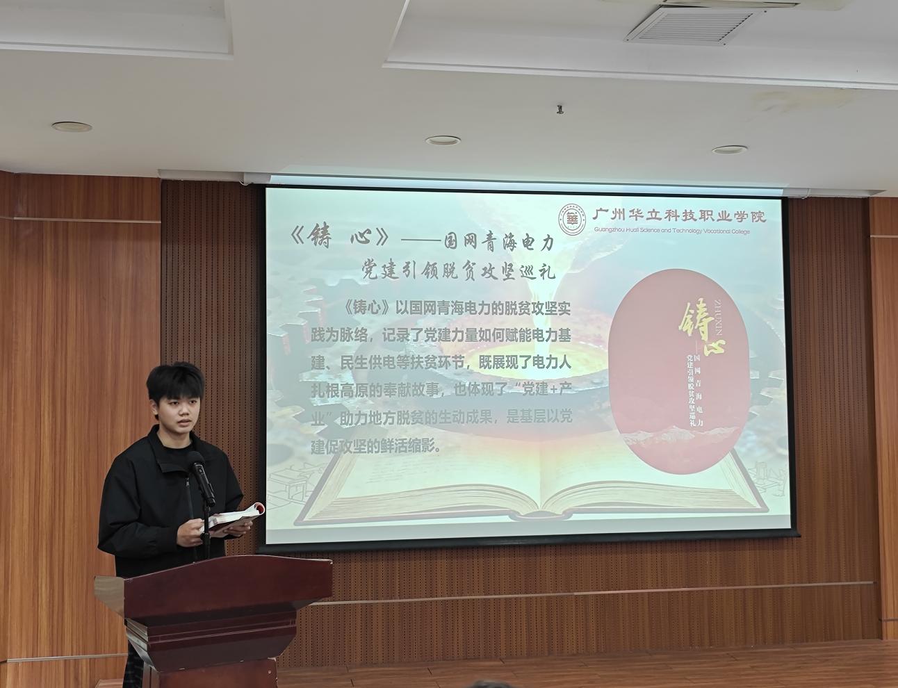 為學(xué)習(xí)貫徹黨的二十屆四中全會精神,做好“儒雅電力人”文化育人黨建品牌建設(shè),持續(xù)推進(jìn)“三十本書·閱讀工程”,厚植紅色文化底蘊(yùn),凝聚電力學(xué)子的紅色使命擔(dān)當(dāng)。12月4日下午,電力與智能制造學(xué)院(云浮校區(qū))舉行“擎紅色旗幟 創(chuàng)智能電力”主題讀書分享會。參加會議的領(lǐng)導(dǎo)與嘉賓有:學(xué)校圖書館副館長劉杰、基礎(chǔ)業(yè)務(wù)部副主任魏秋文、趙淑珍、黃平娟,學(xué)院副院長馬洪德、學(xué)管主任肖文相、團(tuán)委副書記吳培龍及參加分享的學(xué)生與學(xué)生代表。