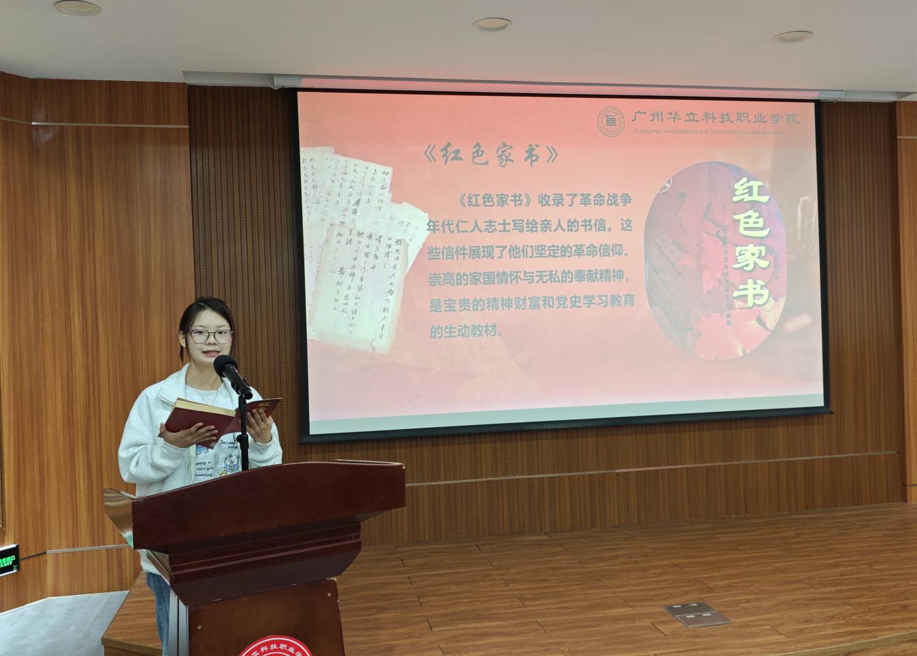 本次讀書分享會前期經(jīng)過為期兩周的廣泛征集與精心選拔,共有五位同學(xué)進(jìn)入現(xiàn)場分享環(huán)節(jié)。25級無人機(jī)4班楊嘉麗同學(xué)分享《紅色家書》,她講到在革命志士的家書里,藏著“舍小家為大家”的奉獻(xiàn)精神,這正是電力人“堅(jiān)守崗位、點(diǎn)亮萬家”的初心寫照,讓我讀懂了“奉獻(xiàn)”二字的重量。”
