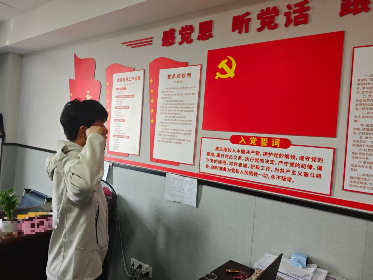 我在“政治生日”這天重溫了入黨誓詞,在鮮紅的中國共產(chǎn)黨黨旗前,我佩戴黨徽,舉起右拳,宣誓“我志愿加入中國共產(chǎn)黨,擁護(hù)黨的綱領(lǐng),遵守黨的章程……”鏗鏘有力的誓言回蕩在活動室的每個角落,既是對初心的回望,也是對信仰的淬煉。在重溫誓詞的過程中,再次感受入黨時的赤誠與激昂,進(jìn)一步堅(jiān)定了為共產(chǎn)主義事業(yè)奮斗終身的信念。