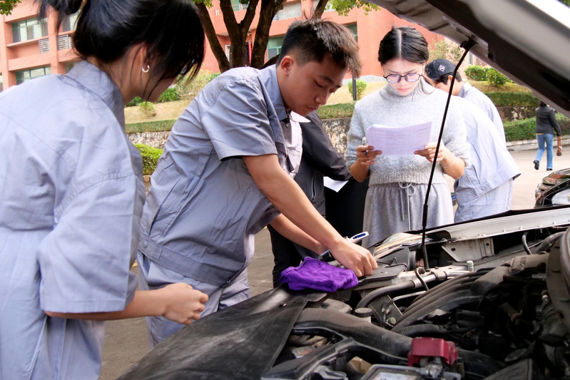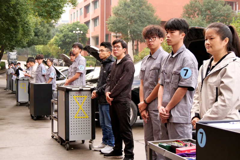 競賽現(xiàn)場,參賽選手們精神抖擻、分工協(xié)作,精準(zhǔn)運(yùn)用檢測設(shè)備排查故障、規(guī)范完成維修操作,展現(xiàn)出扎實(shí)的專業(yè)功底與良好的職業(yè)素養(yǎng)。賽場氛圍緊張有序,選手們比速度、拼精度、賽默契,觀摩學(xué)生不時(shí)為精彩操作鼓掌喝彩。最后經(jīng)過緊張激烈的角逐,25新能源4班的楊定坤和24新能源1班的葉釋文獲得一等獎(jiǎng)。此次大賽不僅直觀檢驗(yàn)了學(xué)院汽車類專業(yè)的教學(xué)成效,更有效激發(fā)了學(xué)生的學(xué)習(xí)主動(dòng)性與創(chuàng)新意識,實(shí)現(xiàn)了“以賽促學(xué)、以賽促練、以賽促改” 的預(yù)期目標(biāo)。