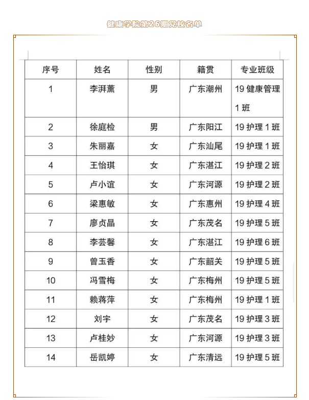 健康學(xué)院第26期黨校培訓(xùn)名單公示