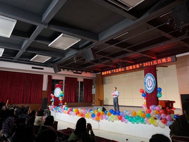 兩個(gè)精彩的熱場(chǎng)節(jié)目結(jié)束后,健康學(xué)院院長(zhǎng)雷毅雄教授上臺(tái)致辭,宣布晚會(huì)節(jié)目正式開始