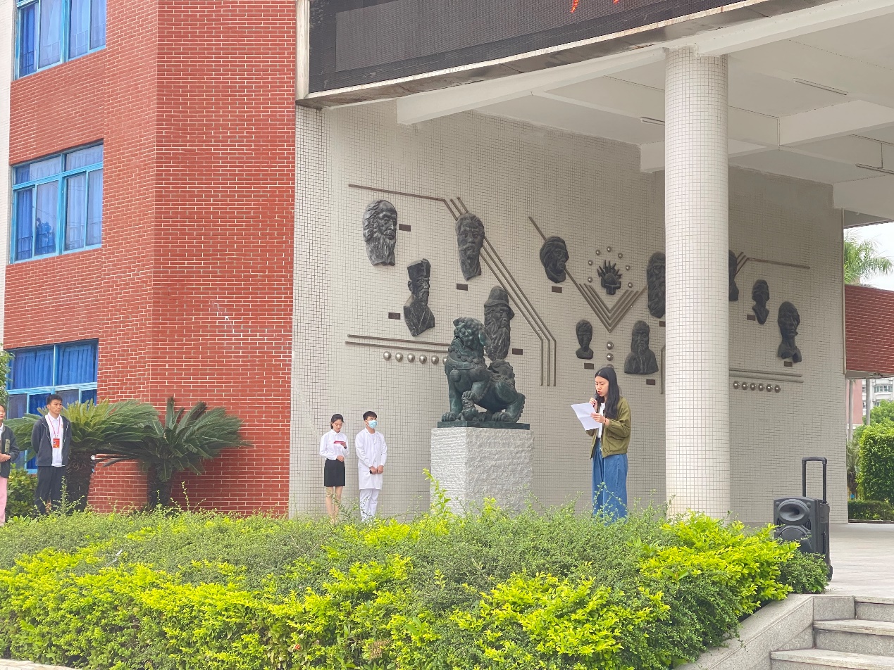 隨著國旗懸掛在高空,本次升旗儀式的主題正式開始,由主持人梁凱茜同學(xué)為大家致辭。