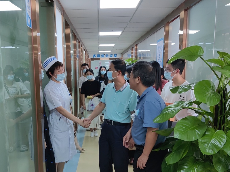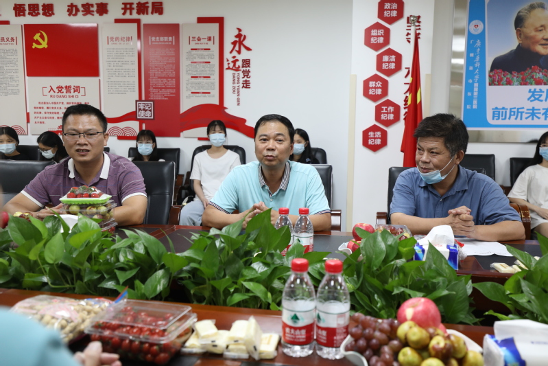 思念如綠葉,桂香滿心房。2020年9月17日,為進一步加強校醫(yī)合作,深化產(chǎn)教融合,中秋來臨之際廣州華立科技職業(yè)健康學(xué)院院長雷毅雄、廣州華立科技職業(yè)學(xué)院校外教學(xué)科科長韋建林、校外教學(xué)副主任李景德、廣州華立科技職業(yè)學(xué)院健康學(xué)院護理系楊鵬老師、校外干事鄧健坤一行到廣東藥科大學(xué)附屬第三醫(yī)院看望2019級跟崗實習(xí)的30位學(xué)生,并深入了解她們在校外的學(xué)習(xí)、工作情況。