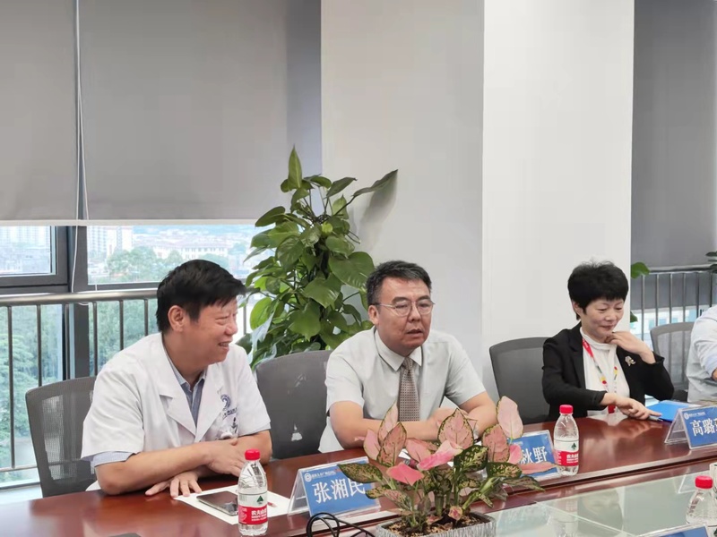 寇秋野黨委書記介紹了前海人壽(廣州)總醫(yī)院的發(fā)展情況及未來規(guī)劃,對醫(yī)校搭建合作平臺分享了看法,希望雙方加強合作。張湘明教授對搭建校企合作平臺進行了必要的細節(jié)性的補充,并就場地、專家?guī)?、關(guān)聯(lián)專業(yè)和優(yōu)勢進行深入的講解。
