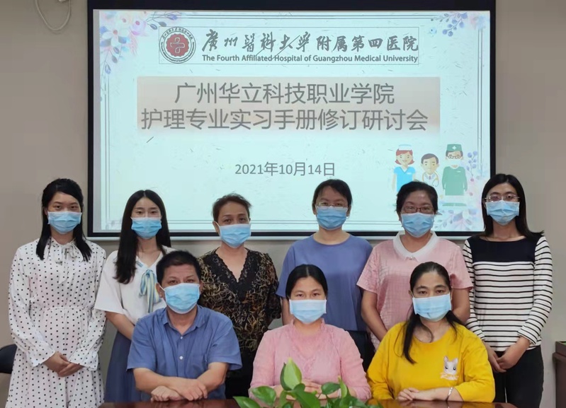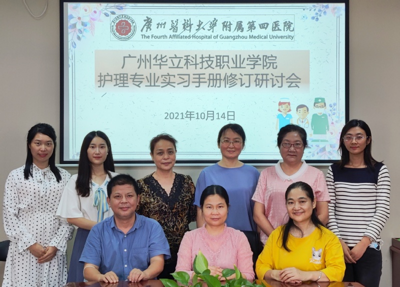 2021年10月14日,為進一步完善護理專業(yè)臨床實習手冊,健康學院校外教學主任李景德、護理系主任李子萍、護理系副主任白岫丹、許志紅教授、鄧香華教授、青年教師楊鵬、梁寧寧、張馨月、校外干事鄧健坤等一行9人到廣州醫(yī)科大學附屬第四醫(yī)院研討實習手冊的修訂并看望了部分實習生,受到第四醫(yī)院李素婷主任的熱烈歡迎。