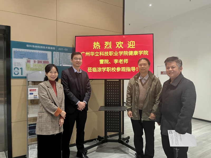 2022113日,廣州華立科技職業(yè)學(xué)院健康學(xué)院院長雷毅雄教授、校外教學(xué)副主任李景德一行前往廣州淙學(xué)檢測企業(yè)管理有限公司洽談培訓(xùn)項目。