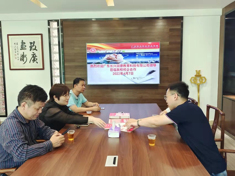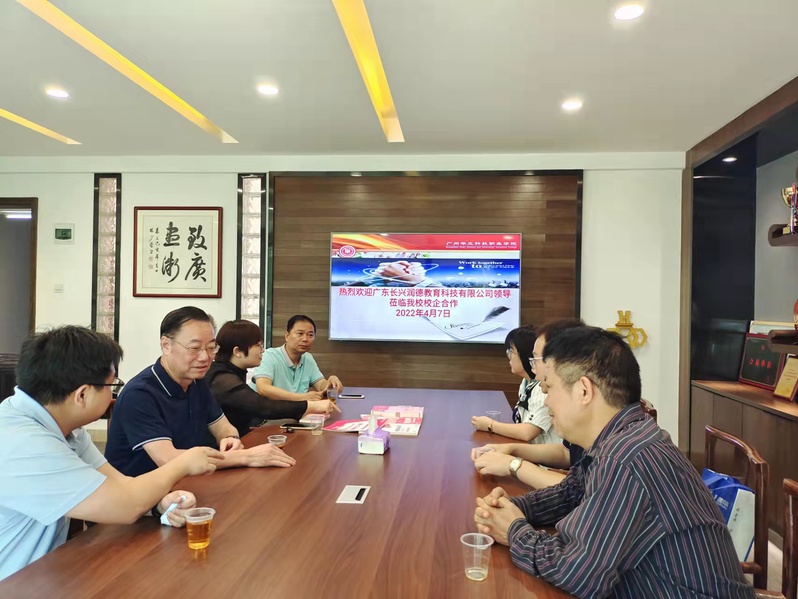 2022年4月7日下午,廣州華立科技職業(yè)學(xué)院黨委書(shū)記林偉健、常務(wù)副校長(zhǎng)馬俊、健康學(xué)院院長(zhǎng)雷毅雄、校外教學(xué)與就業(yè)處處長(zhǎng)鐘文浩、校外教學(xué)副主任李景德等與廣東長(zhǎng)興潤(rùn)德教育科技有限公司薛志雨副總一行在行政樓301洽談護(hù)士資格證培訓(xùn)項(xiàng)目,助力畢業(yè)生就業(yè)。