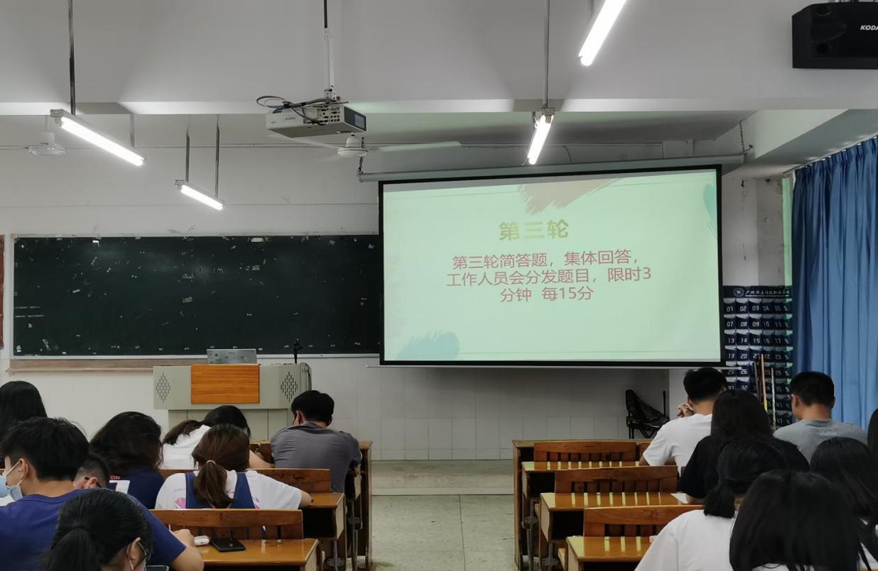 比賽的主要形式是以現(xiàn)場(chǎng)競(jìng)答進(jìn)行分為包括;必答題,搶答題,集體作答,風(fēng)險(xiǎn)題四個(gè)環(huán)節(jié)各隊(duì)競(jìng)爭(zhēng)激烈,不分高低。在第一輪期間 各位同學(xué)認(rèn)真回答 爭(zhēng)取在必答輪中拿到好成績(jī)。