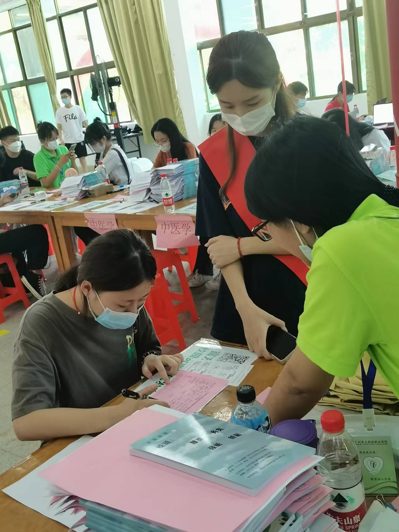 由于今年新生多,幾乎是在校生的三倍,健康學(xué)院的每一位師哥師姐都積極主動(dòng)投入到迎新的志愿服務(wù)中!只見(jiàn)他們個(gè)個(gè)精神抖擻,著裝整齊,盡管天氣炎熱,汗水濕透了衣衫,臉也曬得通紅,然而他們始終微笑著熱情不減,為師弟師妹辦手續(xù),搬行李……盡管人很多,但工作有條不紊,忙而不亂,充分展現(xiàn)了醫(yī)學(xué)生的嚴(yán)謹(jǐn),勤奮,勇敢與擔(dān)當(dāng)!師哥師姐志愿者們?yōu)閹煹軒熋脴淞⒘肆己玫陌駱樱?/span>