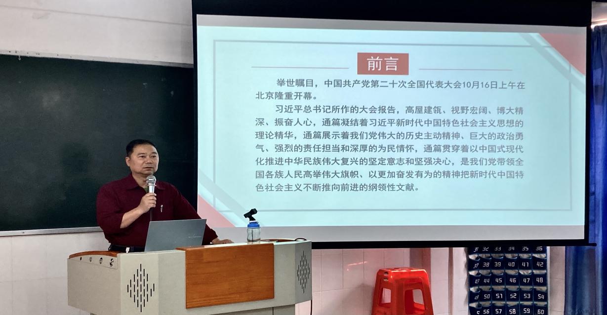 為深入貫徹習(xí)近平新時(shí)代中國(guó)特色社會(huì)主義思想和黨的二十大精神,全面落實(shí)《關(guān)于新時(shí)代加強(qiáng)和改進(jìn)思想政治工作的意見(jiàn)》,進(jìn)一步加強(qiáng)學(xué)生思想政治教育,緊抓開(kāi)學(xué)契機(jī),32日下午,健康-中醫(yī)藥學(xué)院雷毅雄院長(zhǎng)以“學(xué)習(xí)黨的二十大精神,著力推動(dòng)高質(zhì)量發(fā)展”為主題,在西二205教室為入黨積極分子和黨建小組成員講授2023年春季學(xué)期思政第一課。