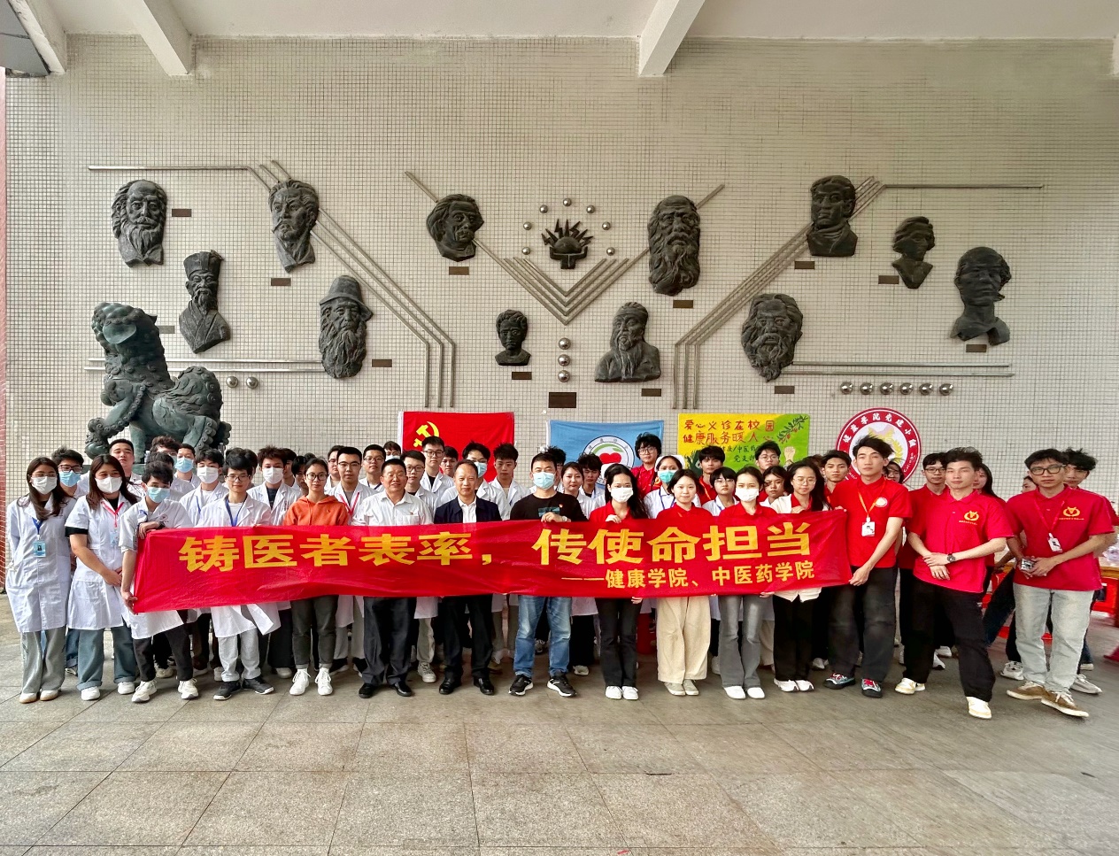 參與愛(ài)心義診的同學(xué)與領(lǐng)導(dǎo)合照