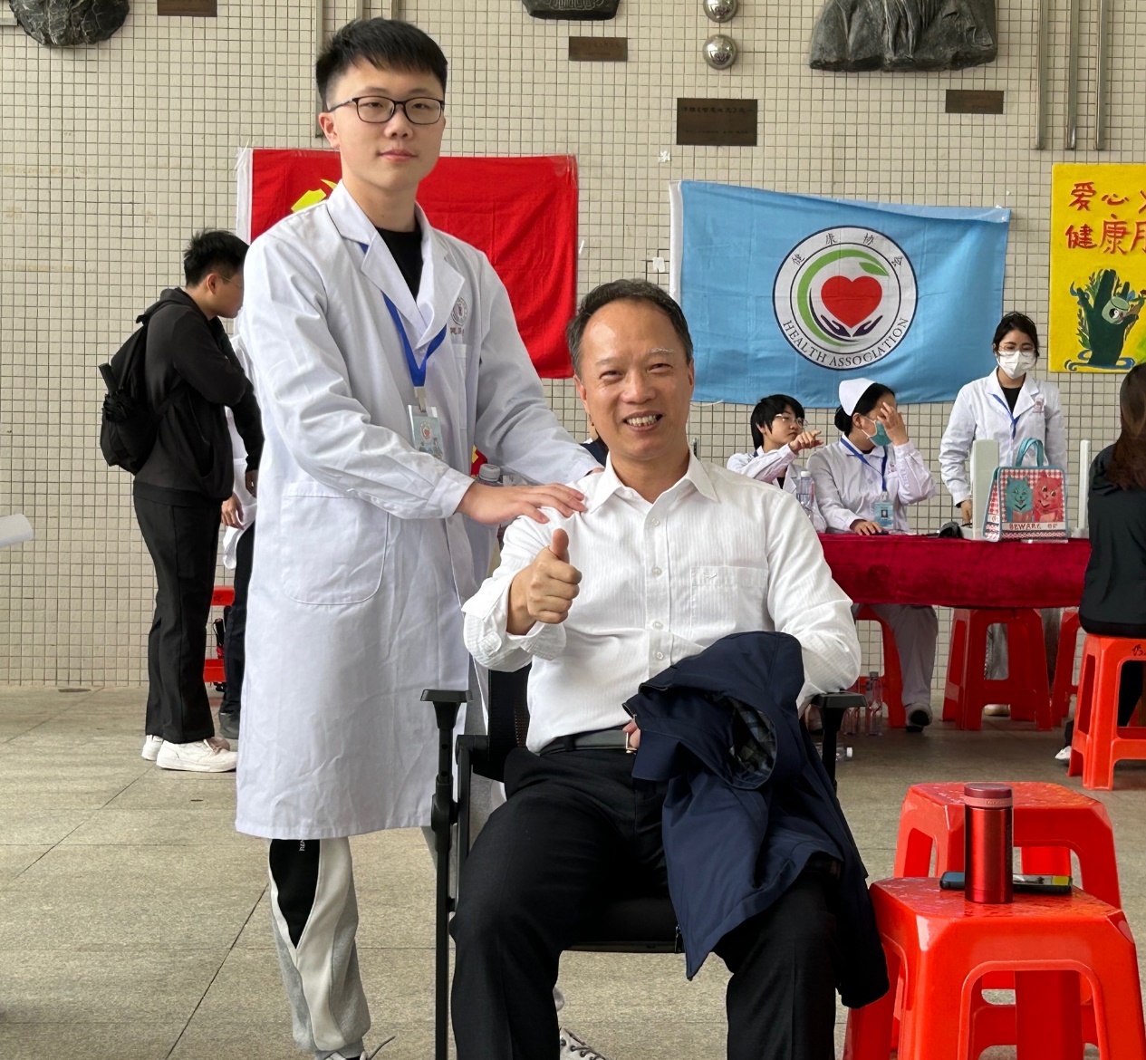為全面貫徹落實(shí)黨的二十大精神,深入落實(shí)習(xí)近平總書(shū)記關(guān)于青年工作的重要思想,2023年4月6日中午,健康-中醫(yī)藥學(xué)院黨建小組聯(lián)合健康協(xié)會(huì)于綜合樓一樓大廳開(kāi)展主題為“愛(ài)心義診在校園,健康服務(wù)暖人心”的面向全校師生愛(ài)心義診實(shí)踐活動(dòng),為師生送健康、送溫暖,為群眾辦實(shí)事、辦好事,進(jìn)一步提升師生的獲得感和幸福感。