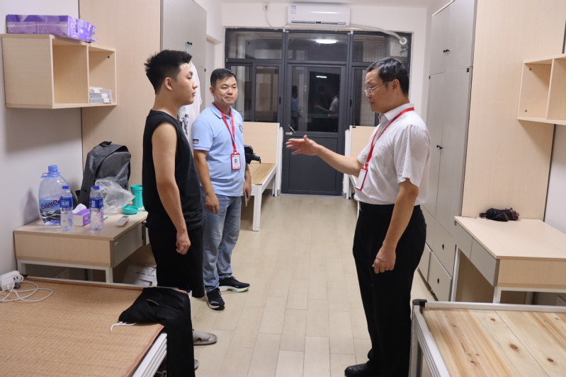 初秋的涼風吹走炙熱的焦慮,我們在夏天在思念,終于在秋天相見,又是一年迎新季,2023年9月2日,健康學院孟允煌副院長、學管主任劉偉鑫主任帶領(lǐng)健康學院學管隊伍、學生干部到學生宿舍看望2023級新生,深入學生宿舍,為學生送去關(guān)心和問候。