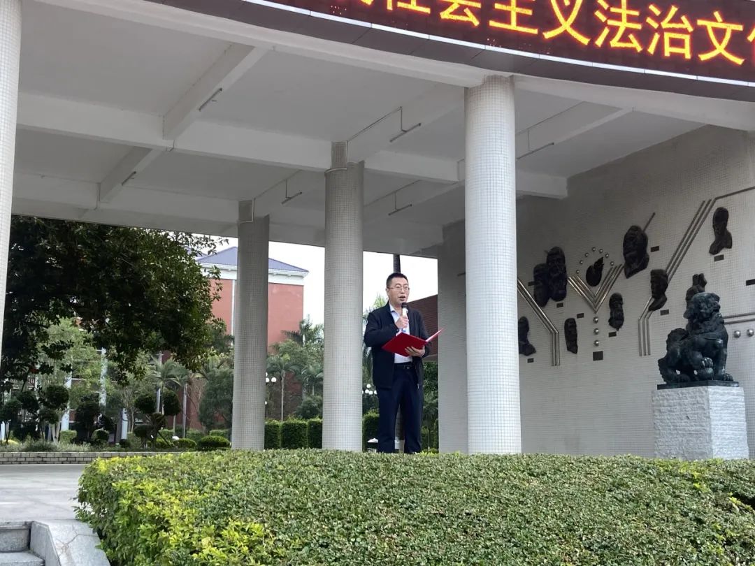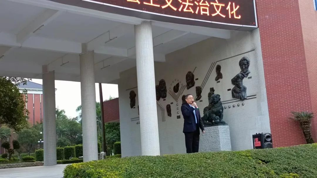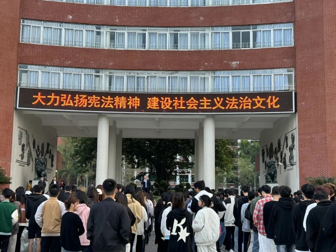 隨風(fēng)飄揚(yáng)的國(guó)旗,暖暖灑下的陽(yáng)光,廣州華立科技職業(yè)學(xué)院黨委副書記高堯來(lái)副校長(zhǎng)向老師同學(xué)們普及憲法知識(shí),12月4日是國(guó)家憲法日,希望大家記住這一天,認(rèn)真學(xué)習(xí)憲法的一些知識(shí)。權(quán)力屬于人民,權(quán)力屬于憲法,一切違反憲法和法律的行為都必須予以追究和糾正,我們也要引以為戒,不做違法亂紀(jì)的事。希望全體師生提高認(rèn)識(shí),積極了解憲法,弘揚(yáng)憲法精神,成為對(duì)社會(huì)責(zé)任,有擔(dān)當(dāng)?shù)氖胤ü?,同時(shí)我們大家要深入學(xué)習(xí)習(xí)近平總書記的法治思想,用法律鑄就屏障,不斷將理論和實(shí)踐結(jié)合,取得新成果,為推動(dòng)全面依法治國(guó)貢獻(xiàn)力量,書寫法治中國(guó)新篇章!