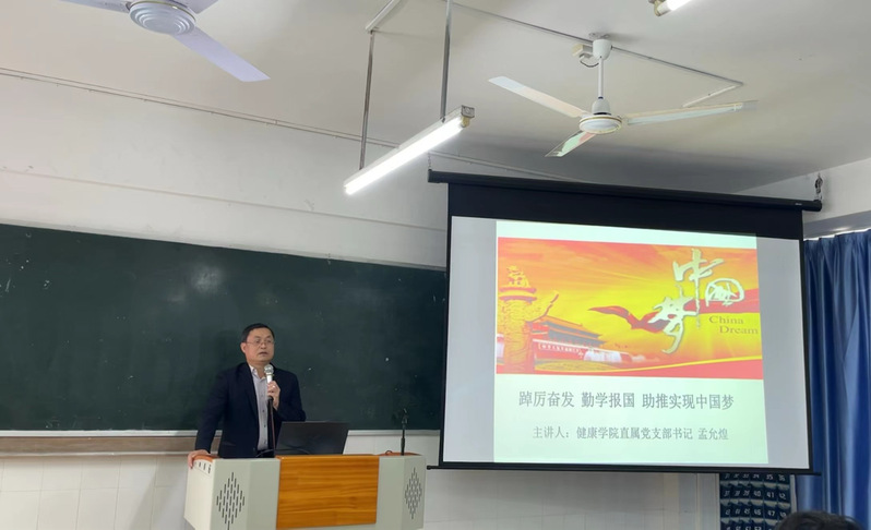 根據(jù)學(xué)校黨委工作安排,2024年3月18日中午,健康學(xué)院直屬黨支部在西2-203教室,為健康學(xué)院22級護(hù)理、健康管理、康復(fù)治療技術(shù)等專業(yè)的學(xué)生代表和黨建小組成員組織一堂別開生面的思政課。黨支部書記孟允煌以《踔厲奮發(fā)勤學(xué)報國助推實現(xiàn)中國夢》為主題,鼓勵同學(xué)們踔厲奮發(fā)、勤學(xué)報國、勇于實踐、艱苦奮斗、開拓創(chuàng)新,用自己勤勞的雙手收獲成功、托起自己的夢、助推實現(xiàn)中國夢。