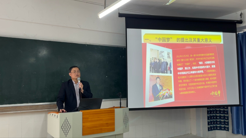 課堂上,孟允煌書記分別從“中國夢”的提出及其重大意義、“中國夢”的豐富內(nèi)涵和時代特征、如何實現(xiàn)“中國夢”、當(dāng)代大學(xué)生如何為實現(xiàn)中華民族偉大復(fù)興中國夢而努力奮斗等四個方面,逐一展開講授。