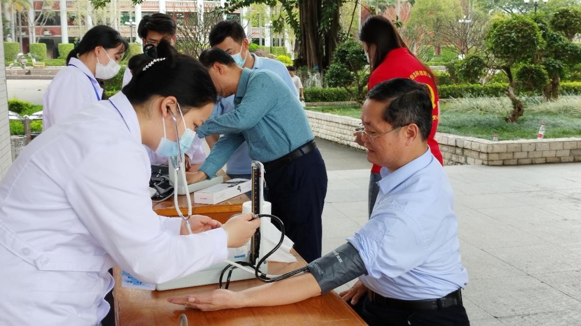 雷毅雄院長(zhǎng)帶領(lǐng)同學(xué)們?yōu)閹熒鷾y(cè)量血壓,并根據(jù)每個(gè)人的具體情況給予針對(duì)性的健康建議,解答師生們的疑問并及時(shí)普及高血壓的危害、預(yù)防措施以及日常生活中如何控制血壓等知識(shí)。