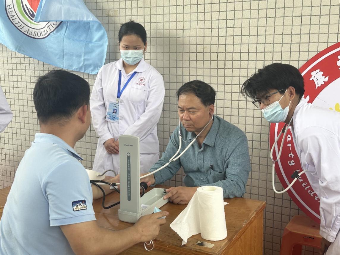 院長(zhǎng)雷毅雄親自指導(dǎo)學(xué)生測(cè)量血壓